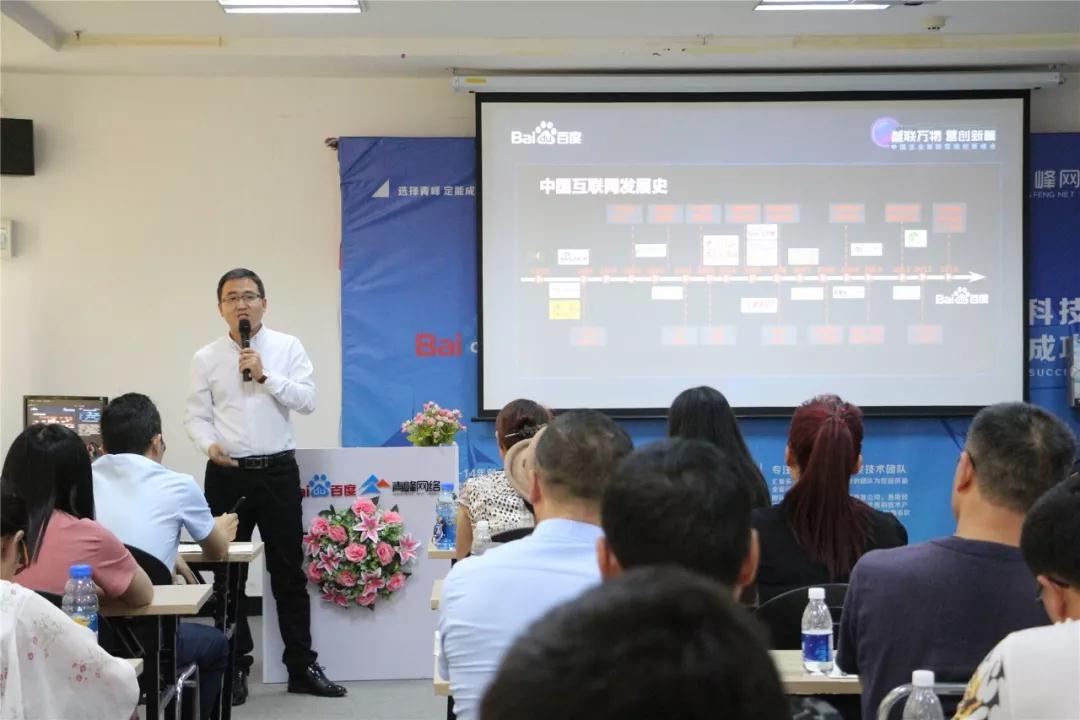 洛陽市青峰網絡科技有限公司百度推廣運營總監張浩陽先生發表主題演講,以一張中國互聯網發展史的圖片切入,講解了以智能技術為核心的新形勢下,洛陽的企業家究竟怎樣讓自己的品牌迅速突出,怎么去選擇性價比更高的商業解決方案來助力自己的成功。